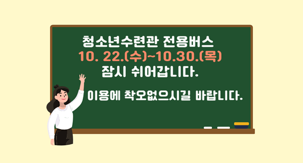 û¼Ò³â¼ö·Ã°ü Àü¿ë¹ö½º°¡ 10¿ù 22ÀÏ(¼ö) ~ 10¿ù 30ÀÏ(¸ñ)±îÁö Àá...